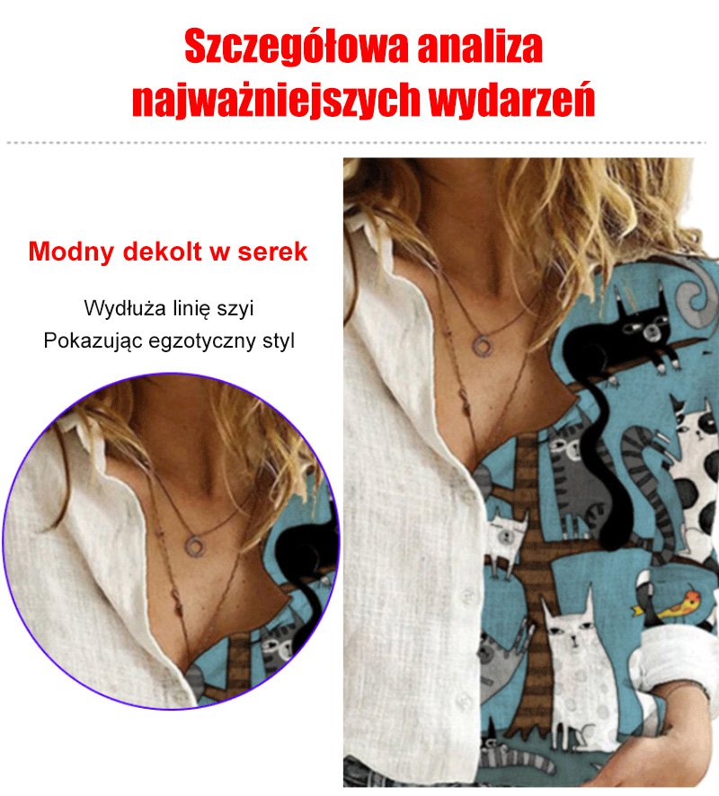 Luźna koszula z długimi rękawami, pół-nadruk
